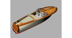 Questa piccola unità è stata progettata su richiesta di un cliente che desiderava una barca, dalle linee ispirate all'intramontabile Aquarama, da costruirsi in lega leggera con inserti estetici in legno.