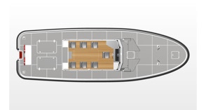 Study for a new pilots’ boat with greater dimension than Work 12, with new hull lines and Volvo Penta IPS propulsion pods or V-drive shaft lines; afterward engine room. Possibility to install also water jets propulsion.