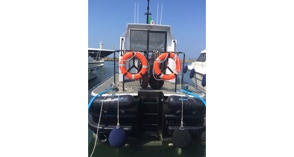 Pilot boat type Work 12 with propellers in semi-tunnels and custom cabin to minimize draft and height over the water.