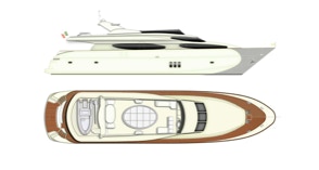 • Scafo e sovrastruttura in vetroresina: fondo in stratificato semplice, fianchi, coperta, flying bridge e sovrastruttura in stratificato sandwich