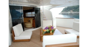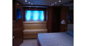 - cabina armatore centrale matrimoniale con spogliatoio, bagno (Jacuzzi) e ampie finestrature laterali sulle fiancate dello scafo