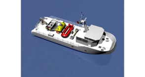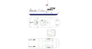 It is thrusted by two waterjets in order to minimize the draft and to be able to sail in shallow sandy waters with algae and mangroves. Also the engines refrigerating system has been studied to work in shallow and “dirty” waters.