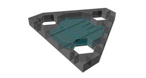 Perro Negro 4 is a jack-up for offshore petroleum researches. It has three legs that, during field transit and ocean tows, are entirely raised up. In case of bad weather they can be partially lowered (depth allowing) and/or disassembled to increase metacentric height.
