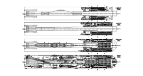 Abbiamo sviluppato una versione del nostro software di stabilità e robustezza longitudinale Stabilitas Plus (si veda la pagina Software) ad uso dell'ufficio tecnico Saipem, affinché potesse essere utilizzato quale ausilio alla progettazione della trasformazione della nave. Il software è in grado di tener conto, ai fini della stabilità e della robustezza longitudinale, dei movimenti delle gru e dei loro bracci, del movimento del traliccio per la posa dei tubi, del tiro di questi e del tiro delle ancore.