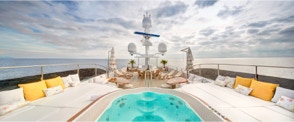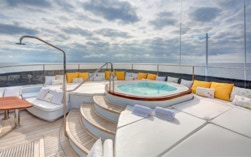 The big sun deck is supplied with hydromassage pool, shower, solarium, deck-chairs, and bar.