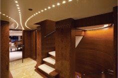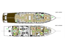 On the main deck there is a very big saloon with bar, relax zone and dining zone served directly by the “big hotel” galley located forward the saloon. The forward zone of the main deck is completely reserved to the Shipowner, with a big full body cabin, studio, lounge and bathroom with hydromassage.