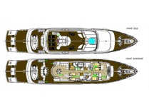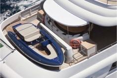 Aft, aft-ward an external relax zone with a commodious sofa, there are a crane and the main tender, that is also rescue boat; on the extreme bow, beyond the mooring equipment, there are a crane and the service boat or the jet-skies.