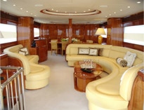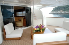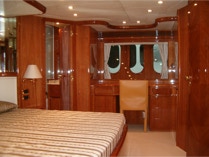 - cabina armatore centrale matrimoniale con spogliatoio, bagno (Jacuzzi) e ampie finestrature laterali sulle fiancate dello scafo