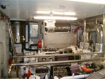 • Sala macchine: centrale, con casse gasolio strutturali trasversali a prua, 2 ingressi laterali dai fianchi della sovrastruttura